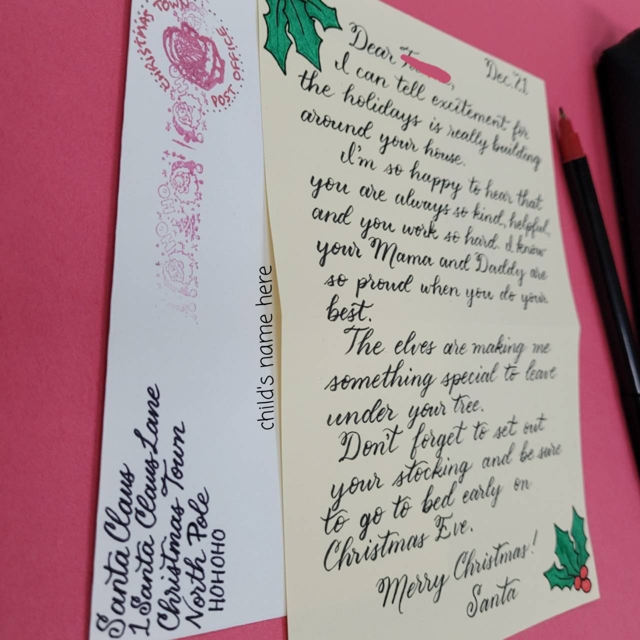 Santa's Letter comes with the child's name and address in calligraphy on an envelope post-marked from the North Pole!
